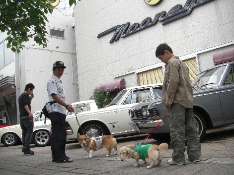 本牧のドックカフェ「アズハート」で犬雑誌「DOGFAN」の撮影会がありました。プロカメラマンに無料で撮って貰えるって事で参加してみました。順番に撮ってもらうわけですが、待ち時間に撮影風景を観察。興奮状態の犬にカメラに目線もらえず慌てる飼い主や撮影直前までブラッシングしてる飼い主、いい顔してもらおうとドラえモンのごとくいろんなアイテムだしまくる飼い主、おやつで釣ろうと慌てて現場におやつをバラ蒔いてしまったりと飼い主のほうが大騒ぎだったりでおもしろかったです。この模様は9月13日発売10月号の「DOGFAN」にて! ついでに並びにある「MOON EYES」までお散歩です。エコ替え~♪するニューカーのハンドルカバー買いました~