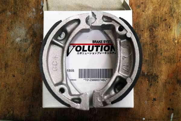 安いシューは無いものかと探してみたらauPAYマーケットで890円(送料360円)ポイント割引を差し引いて1,034円で購入出来た。但し、スプリングは付属していないので、再利用する。適合車種の掲載欄にCRF70F、ジョルカブ、リード80、タクト、XR80R、XR70R、XR100R、CRF80F、TLR200と記載されていたので、掲載車種は同じシューを使用しているものと思われる。TLR200用が無かったら、記載の車種用を購入できそうだ。