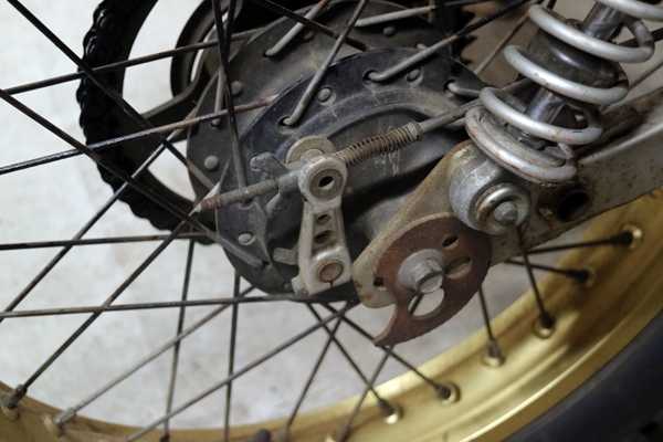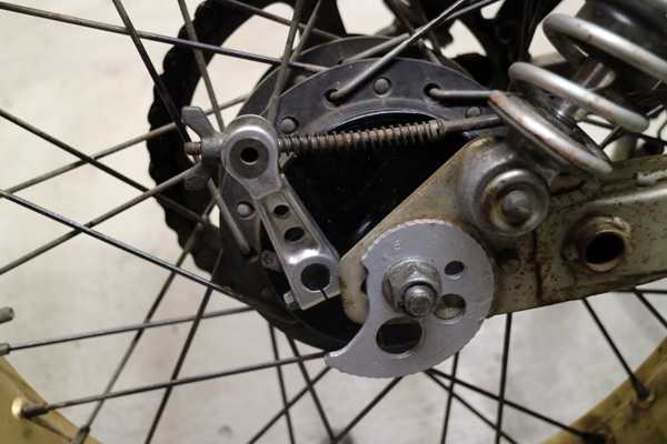 TLR200のドラムブレーキは前後共同サイズを使用しており、TLM50とも共通である。シューの直径は9センチ程で、カブのシューより小さい。こんな小さなシューのブレーキで大丈夫かと不安になるサイズであるが、高速で走る事は無いので効きは十分である。