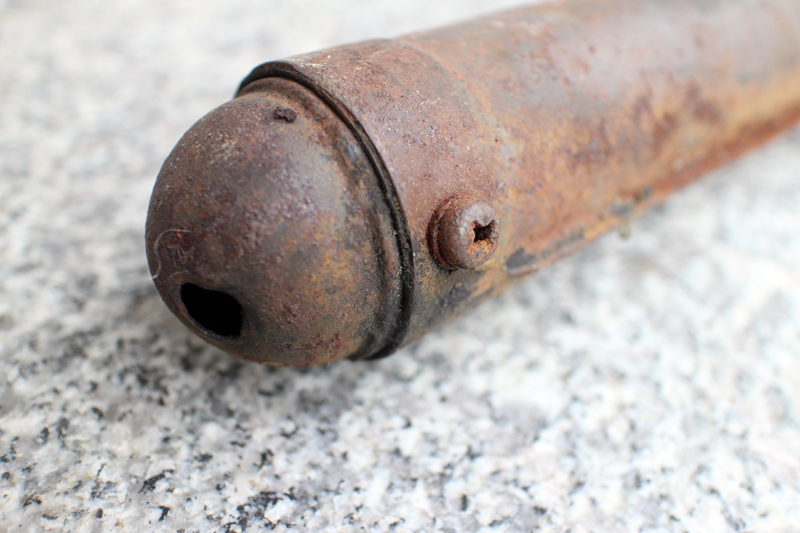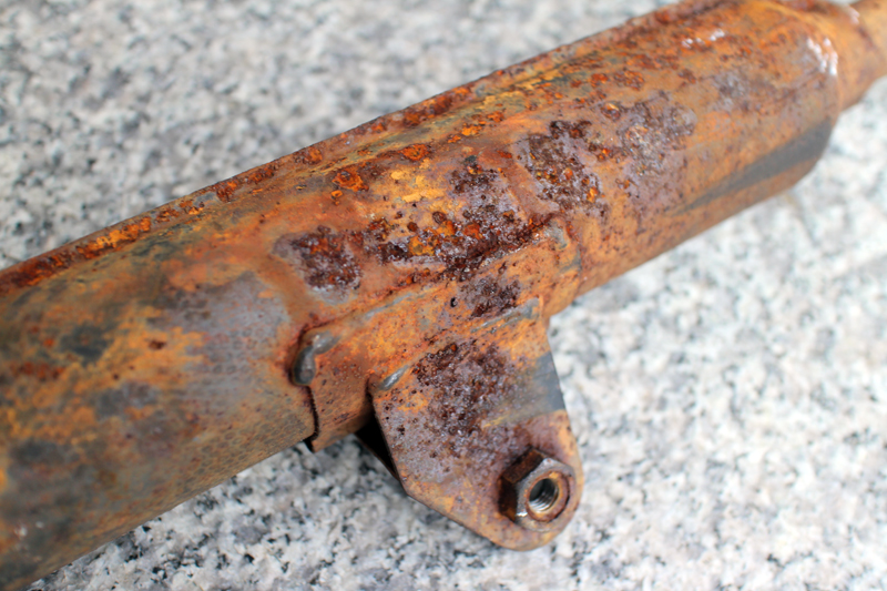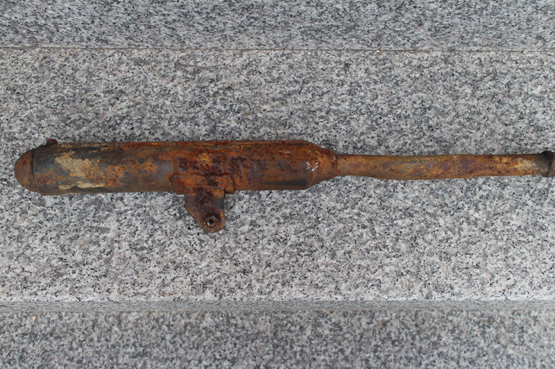 全体にサビがあるのは仕方ないが、取り付けステーのあたりがかなり酷い。せめてもの救いは穴あき箇所が無かった事だろうか。しかし、どのみちサンドブラストでサビ落としをして耐熱塗料を吹くのだから穴さえ開いていなければ問題無い。これで取り敢えずエンジンを始動する準備が1つ整った。