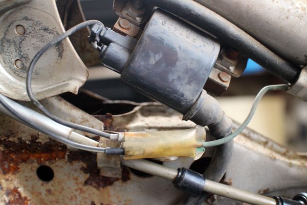 4本線のカプラーの黒線にイグニッションコイルへの緑線を接続
