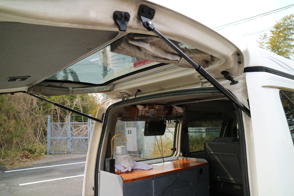 ダンパー交換により勢い良く最上部まで跳ね上がったバックドア