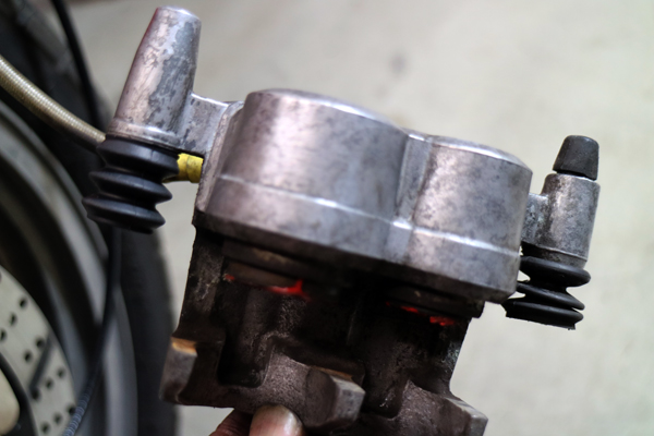 ブーツを交換するには一旦キャリーパーを外し、サポートピンを抜き取る必要があるがブレーキフルードは抜かなくても良いので簡単である。