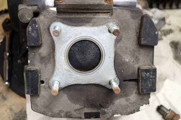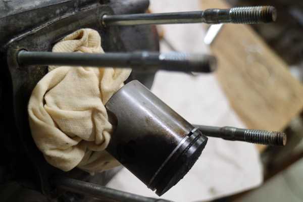 シリンダから抜いたピストンと意外と綺麗だったスタッドボルト