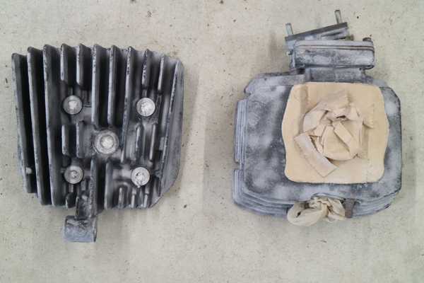 ブラスト後のシリンダーとシリンダーヘッド