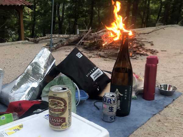 持ち込んだ酒類と焚き火