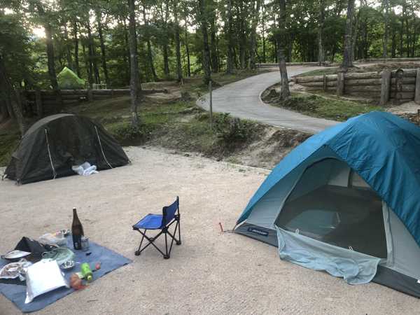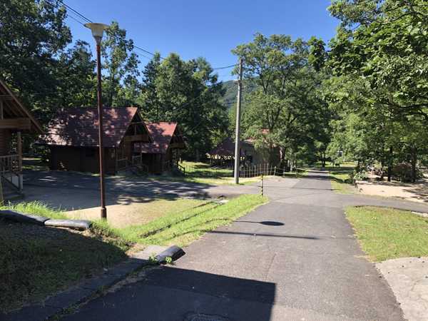 のとろキャンプ場はバンガローも数棟あり、芝生や広葉樹が茂るサイトが広がり綺麗に良く整備されているが、オートキャンプ場は無く、クルマだとサイトには駐車場から荷物を運ぶ必要がある。