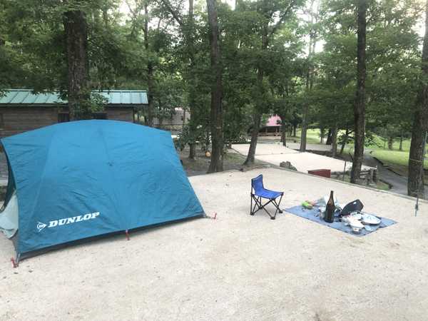 気温は高いがそれでも30°位だろうか、汗が出る程でもないが、バイクを指定されたサイト№6に横付けして、先にテントを張って焚き火の準備を行う。こちらの用意は全て終わったのにクロスカブさんはまだ小さな1人用テントのポールと格闘している。見ているとポールにテントフックを先に付けてしまっているのでクロスして設置するポールがグチャグチャになって幾ら待ってもテントが立たない。今回で4回目のキャンプであるが、設営の仕方を忘れてしまったと言うので、テントの設営方法を指導する。先ずポール4本をクロスさせてテント裾のグロメットに刺せばテントは自立するので、その後にポールにフックを掛ければ5分もあれば設営できる旨を解説しながら手伝う嵌めになった。今回もペグは面倒だから打たないと言う。勝手にしなはれ。