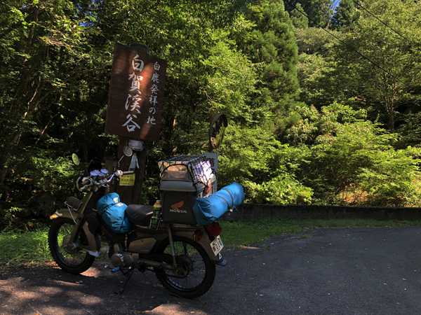 ゆっくりと片付けを終え、今日の予定を話し合う。クロスカブさんはこのまま帰って仕事をするとの事なので、私はGPS25000で探しておいたオフロードであろう道が3㎞ほど続く白賀渓谷に行って、帰りにクロスカブさんの事務所に寄り、カブ2台で昨年行った滝に再挑戦して帰途につく予定を確認した。