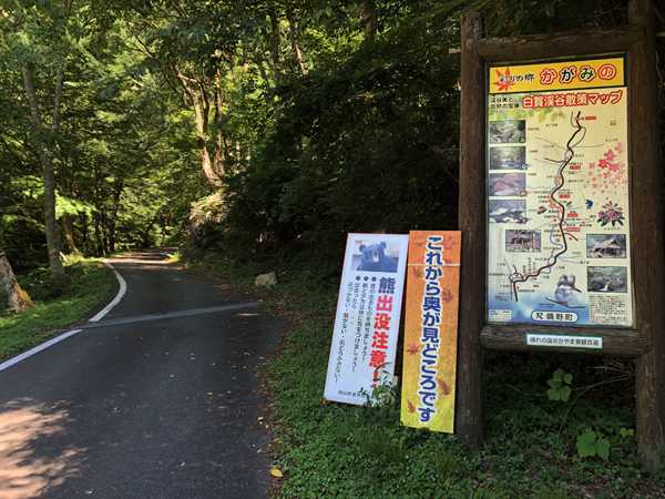 熊出没注意の看板/この先からオフロードに変わる