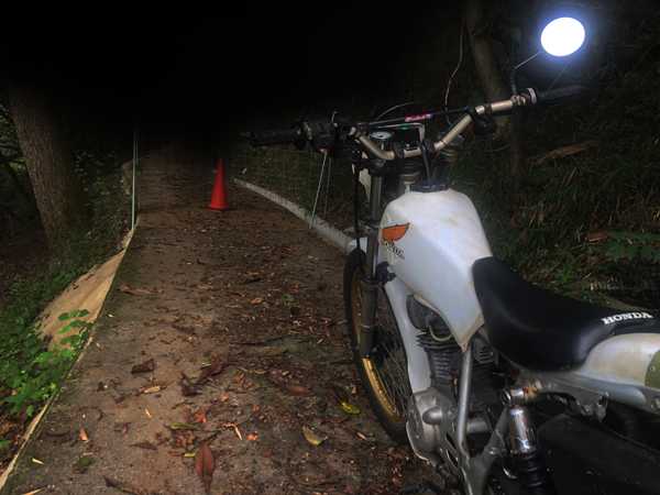 このサスは純正品が廃番となっていたため、ほぼ同じ長さの台湾製の新品サスを装着しているので、分解はしていない。純正品と比べてかなり固いので、1本だけになっても脱落に気づけなかったのだろうが、脱落した場所が特定できないし、サス1本でまたあの過激なオフロードを走るのは危険なので、今日はこのまま帰る事にして、捜索は明日に持ち越しとした。