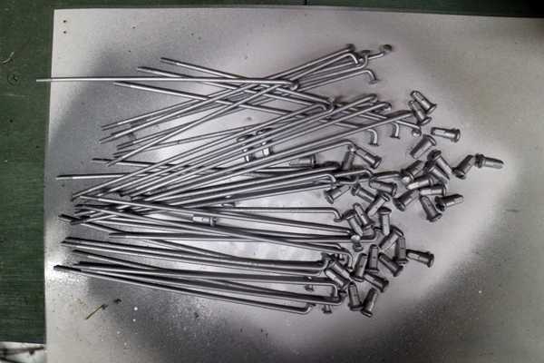 ジンクスプレーの上からシルバーを吹いたスポークとニップル