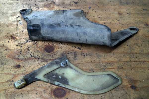 油で汚れたチェーンカバーとガード