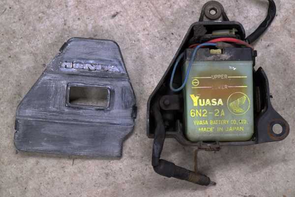 バッテリーケースとスイッチ(蓋は白く塗られていたので剥離した)