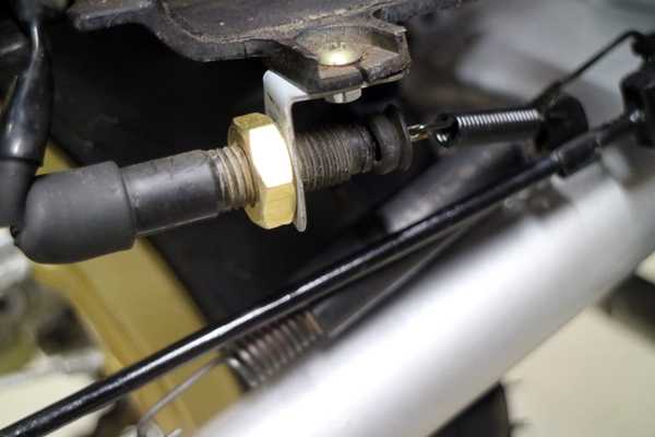 取り付けてみるとピッタリだったが、1号機と見比べてみるとステーを挟んだ反対側にはプラのソケットが嵌まっているのだが、それも欠損している事が今になって気が付いた。早く気が付いておけば、ナットを2ヶ買ってステーを挟んで両側から固定する事が出来たのだが、もう遅い。ナットは片側だけでもブレーキの作動には問題はないので、取り敢えず片側だけにして、新品のリターンスプリングをブレーキロッドに取り付けスイッチの動きを確認しながら調整する。これでブレーキスイッチは何とかなった。