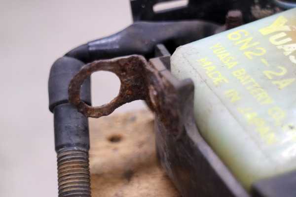 真っ赤に錆びたケースのスイッチ取り付けステー