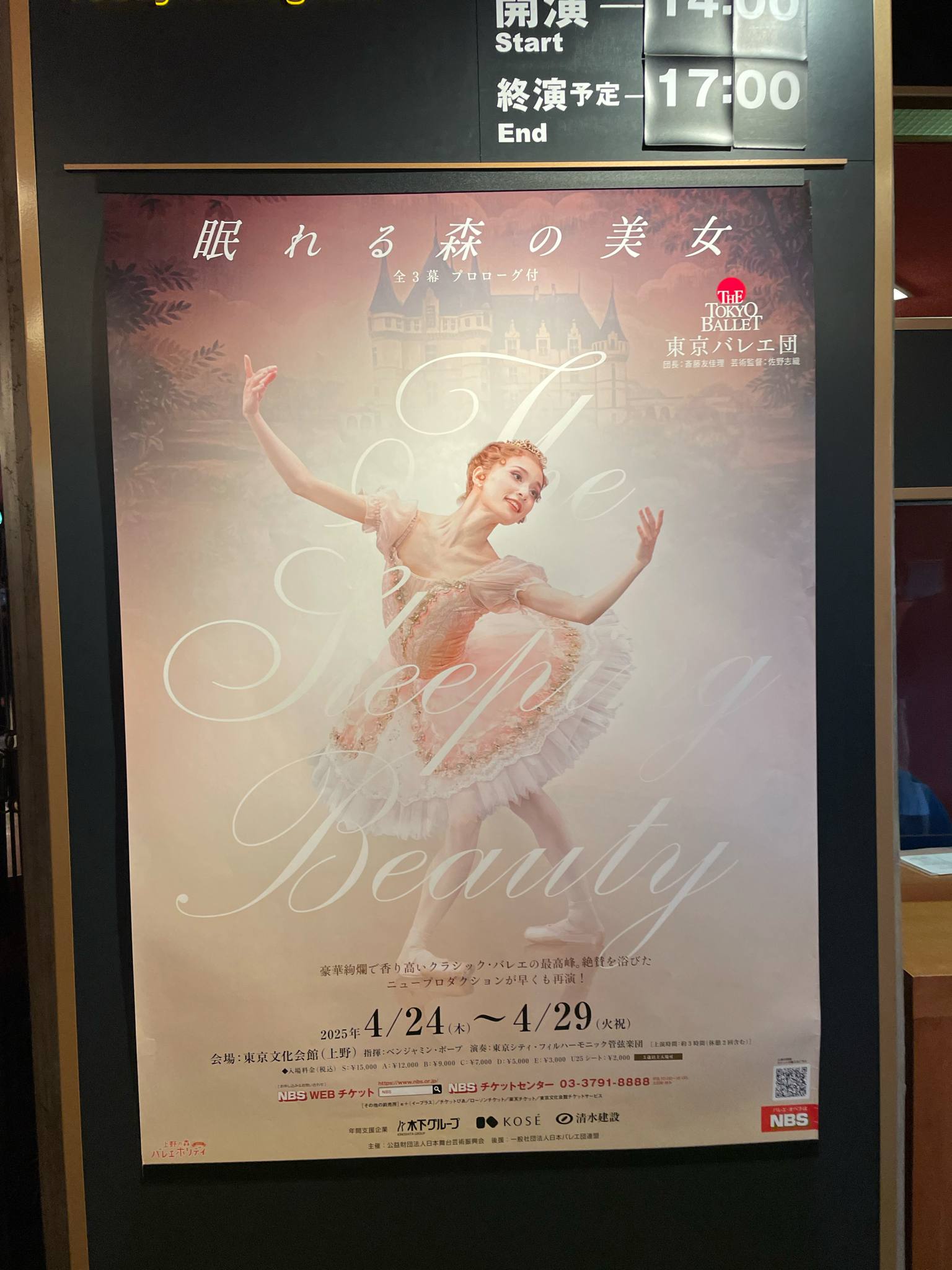 東京バレエ団「眠れる森の美女」全3幕 プロローグ付 4月28日(月)東京文化会館音楽:ピョートル・チャイコフスキー台本:イワン・フセヴォロシスキー、マリウス・プティパ(シャルル・ペローの童話に基づく)原振付:マリウス・プティパ新演出・振付:斎藤友佳理ステージング・アンド・プロダクション・コンセプト:ニコライ・フョードロフ舞台美術:エレーナ・キンクルスカヤ衣裳デザイン:ユーリア・ベルリャーエワ照明デザイン:喜多村貴国王フロレスタン14世 中嶋智哉王妃 奈良春夏オーロラ姫 永久メイ(ゲスト)デジレ王子 宮川新大カタラビュット、式典長 岡崎隼也悪の精カラボス 柄本 弾リラの精 榊優美枝- プロローグ -妖精たち: カンディード(優しさ) 三雲友里加フルール・ド・ファリーヌ(やんちゃ) 涌田美紀パンくずを落とす精(寛大) 足立真里亜歌うカナリヤ(遊び心) 安西くるみヴィオラント(勇気) 伝田陽美- 第1幕 -4人の王子: フォルチュネ王子 生方隆之介シャルマン王子 鳥海 創シェリ王子 安村圭太フルール・ド・ポワ王子 後藤健太朗- 第2幕 -公爵令嬢 加藤くるみガリフロン、デジレ王子の家庭教師 安村圭太- 第3幕 -宝石の精: ダイヤモンドの精 伝田陽美サファイヤの精 平木菜子金の精 足立真里亜銀の精 加藤くるみプラチナの精 安村圭太、鳥海 創、本岡直也、陶山 湘長靴をはいた猫と白い猫 涌田美紀-後藤健太朗青い鳥とフロリナ王女 長谷川琴音-池本祥真赤ずきんと狼 安西くるみ-岡﨑 司親指小僧とその兄弟と人食い鬼 髙橋隼世 野本紗世、植村まお、川村いろは、那須井遥、林凛々花、深澤夏乃香、松岡由記指揮: ベンジャミン・ポープ演奏: 東京シティ・フィルハーモニック管弦楽団協力:東京バレエ団OB・OG、東京バレエ学校***永久メイさん が上野に降臨!人間と思えないほどの透明感をまとっている!ありえないぐらいの高貴さを醸し出すオーロラ姫、絶品でした!***GWの谷間ながら早々に完売。スタープリマ、永久メイの人気を感じさせる熱気。会場はホワイエを解放していていつもより混雑。さらにヒートアップしたバレエファンが集っていた。若い方も多かった。GW休暇の浮き浮きムードが漂っていた。東京バレエ団を生鑑賞するのはずいぶん久しぶり私がバレエ鑑賞本格的に始めたのもNBSさんが招聘してくれたマラーホフ王子の眠りだった気がするが隔世の感23年ぐらい前のことなのだ。その頃生まれたぐらいのお客さんが見に来て楽しんでいるのは本当にありがたいことだ。バレエ人気は衰えるどころかアップする一方だ。その原因は日本人ダンサーの充実ぶりにあるのは明々白々。以前は外国からダンサーを招聘しないと客が集まりにくかったが、もうそんなことはない。日本人ダンサーの成長ぶりが著しいからだ。見た目にも技術的にも海外のダンサーにひけを取らず、むしろ繊細な緻密な表現をするのでよりすばらしく感じられる。バレエというのは芸術なので。スポーツではないのだ。筋肉がついてないように見えるほどについているのが美しい。今日の主役ダンサー二人は決して大柄ではないが、実に均整が取れていて美しい体型でホワイトバレエに適した見た目と言える。これは20年前は考えられないことです!前段長すぎ~演出もおもしろかった。ストーリーを細かく表現していて、通常のよく見る「眠り」とはだいぶ付け加えの表現が多い。Kバレエの影響か、いろいろ新しい表現もあったりしておもしろい。これだと子供でも疑問を感じずにすんなり入っていけると思う。振付はだいぶ変更を加えているシーンがあって、なかなかチャレンジングだった。眠りで最高なのはやはり音楽だ。チャイコフスキーの悲劇的な死を思うと悲しくなるが、彼は最高の音楽をこの世に残してくれたのだ。音楽は永遠だ。***※以下は記憶をもとに記述プロローグ王宮の広間 奥に赤ん坊のベビーベッドカタラビュットと2人の廷臣のユーモラスなやり取り拝謁に来た人々赤ちゃんが入場し奥のベビーベッドに鎮座乳母は二人。王様と王妃が登場リラの精と5人の妖精がベッドの背後から登場する守り神という設定らしく。カンディード(優しさ) フルール・ド・ファリーヌ(やんちゃ) パンくずを落とす精(寛大)歌うカナリヤ(遊び心) ヴィオラント(勇気) の5人カヴァリエではなく廷臣、舎人が6人登場し妖精たちとペアで踊る雲行きが怪しくなり舎人が駆けこんでくる来ます!誰が招待してない人が王が招待状を奪い取って見るない…!投げ捨てるカラボスの部下たちは地獄の番犬のような獰猛な犬たち。この表現も秀逸でした!動きが🐩🐩犬そのもので地べたに這いつくばっている。すごい!カラボスが乗ってくる「車」がまたすごい。巨大なカラスの頭が上部にあってカラボスの顔を覆い隠している。カラボスが登場なんと柄本弾さん!女性にしか見えないから驚き!動きは常に腰を折り曲げて、見ているだけで腰痛になりそうだ!あたしを招待しないとは、呪いをかけるよ!この子は糸巻き車の針に刺されて死ぬリラの精が現れ、カラボス
