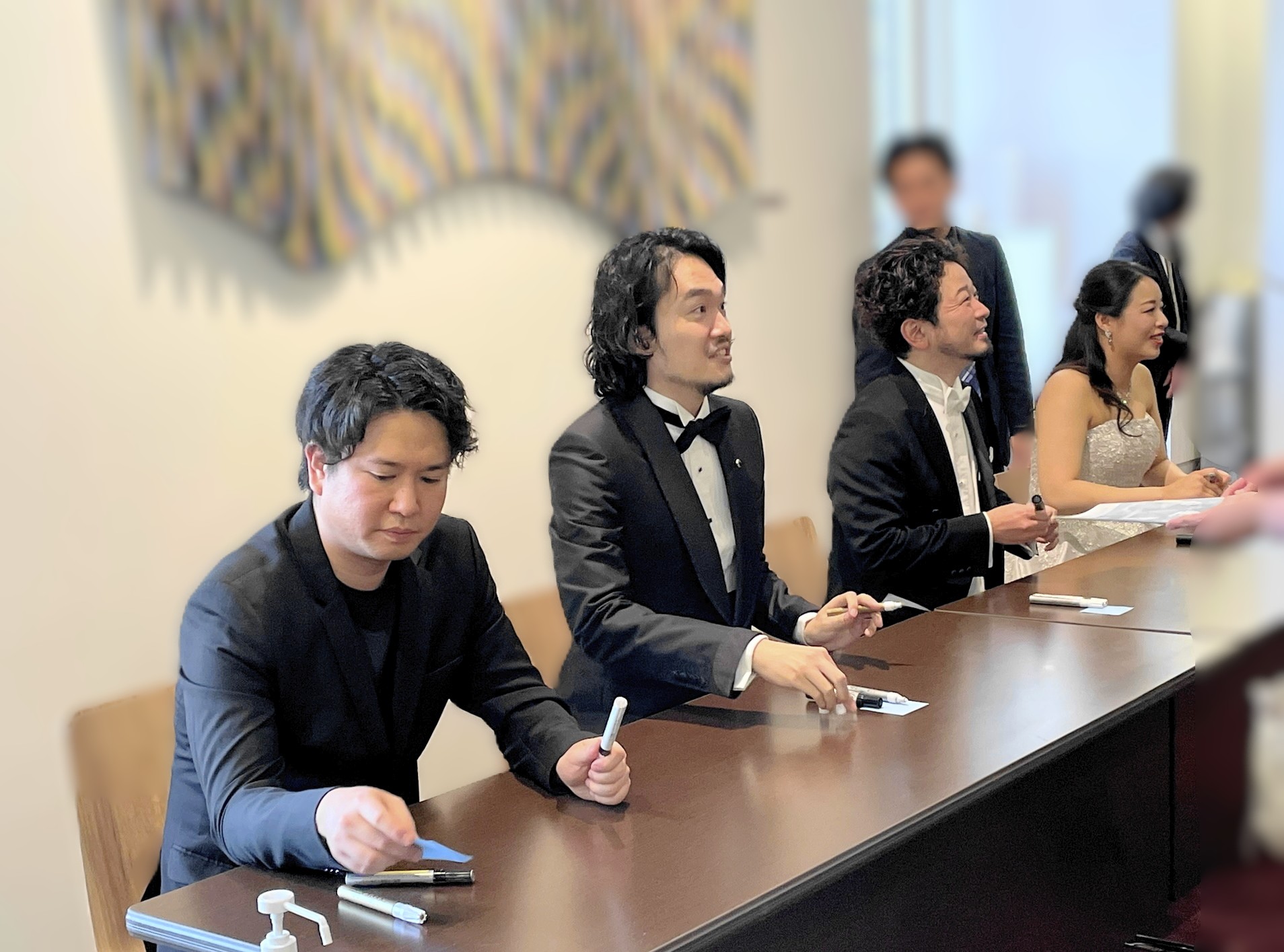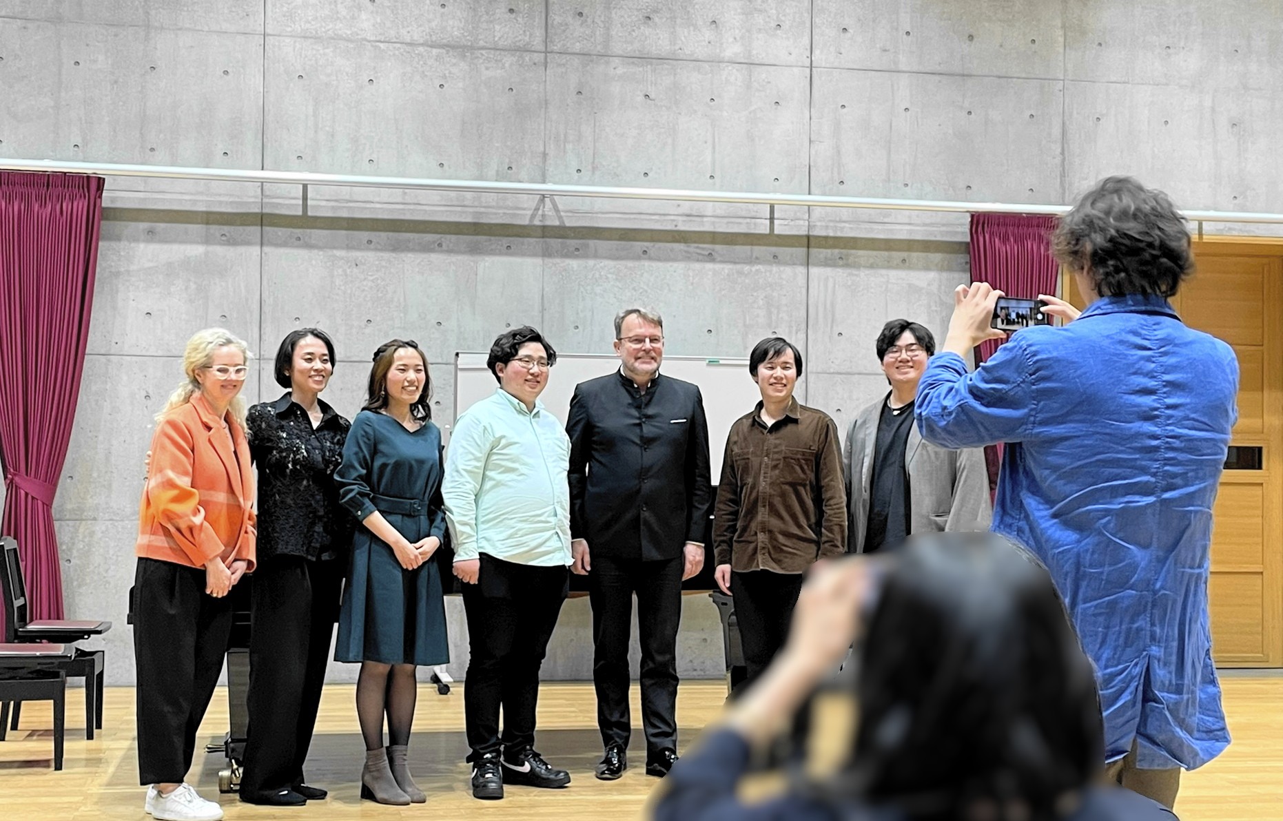 写真左から、高田正人 塩田美奈子 通訳 高田絢子 Tomasz Konieczny(文中敬称略)Photo AlbumPhoto:©Shevaibra, courtesy of Senzoku Gakuen College of Music and the artist※受講生の写真使用に使用に関して主催者の許諾をいただいております。Senzoku Gakuen College of MusicTomasz Konieczny Master class洗足学園音楽大学声楽コース主催「トマシュ・コニエチュニーの声楽マスタークラス」2025年4月14日(月)18:00~20:30洗足学園音楽大学 シルバーマウンテン1F講師:トマシュ・コニエチュニー Tomasz Konieczny受講生:山崎翔也(3年生・バリトン)菊地健太(院2年・バリトン)鈴木諒汰(院2年・バリトン)行場結佳(卒業生・ソプラノ)ピアノ:高田絢子Tomasz Konieczny:現在世界最高峰のバス・バリトン歌手。バイロイト祝祭劇場、ウィーン国立歌劇場やメトロポリタン歌劇場などに出演。※一般聴講可能塩田美奈子(司会・洗足音楽大学客員教授(声楽))高田正人 (洗足音楽大学客員教授(声楽))武田直之 (洗足学園音楽大学声楽コース講師)ほか?***コニエチュニーさんは上野でリサイタルとサイン会を終えすぐに溝の口の洗足学園大学に駆けつけた。ここで学生にマスタークラスである。会場にはそうそうたる顔ぶれのオペラ歌手受講者は4人で、バリトン3人とソプラノ1名。天下の大歌手の前で皆さん臆することなく伸び伸び歌っていて感心した。すでに素人耳にもすばらしい歌手の卵もいた。18時過ぎに始まって20:30頃まで2時間以上熱血指導した。彼の指導は非常にテクニカルなもので実践に即していて、さすがいろんな紆余曲折あってオペラ歌手になっただけあるわかりやすいものだった。***ピアノ:高田絢子以下はメモをもとに概要を記述。コニエチュニー氏はポーランド語と英語で解説する。ポーランド語(と英語)通訳の女性がいる。ピアニストの高田絢子さんがコニエチュニーの英語をわかりやすい日本語で学生に伝えていた。コニエチュニー「時間がないが、その中でできることをやります。」一人目。バリトンFranz Schubert (1797-1828) - Die Winterreise"Auf dem Flusse"川の上で歌詞:Der du so lustig rauschtest,Du heller, wilder Fluß,Wie still bist du geworden,Gibst keinen Scheidegruß.あなたはこんなに愉快に流れた、あなたは明るく野性的な川、今はどれほど静かになったのか、別れの挨拶もない。(川が凍ってることの暗喩)Mit harter, starrer RindeHast du dich überdeckt,Liegst kalt und unbeweglichIm Sande ausgestreckt.硬く、固い表皮(=氷)に覆われてあなたは身を隠している冷たく動かず砂の中に横たわっている。In deine Decke grab' ichMit einem spitzen SteinDen Namen meiner LiebstenUnd Stund' und Tag hinein:あなたの覆い(氷のこと)に尖った石で私の愛する人の名前を書き込む。Den Tag des ersten Grußes,Den Tag, an dem ich ging;Um Nam' und Zahlen windetSich ein zerbroch'ner Ring.初めての挨拶の日、私が去った日名前や数字を壊れた指輪の周りにMein Herz, in diesem BacheErkennst du nun dein Bild ?Ob's unter seiner RindeWohl auch so reißend schwillt ?私の心、この小川の中で今、君は自分の姿を映しているのか?その表皮(=氷)の下で果たしてこんなに激しく膨れ上がるのか?(自分の思いは氷のように冷たく固まってしまったようだが実は激しい心の中の思いを隠しているという暗喩)(演奏終了)彼はハイバリです。Tomasz Konieczny「Bravo けっこういいです。いくつか言葉を直したほうがいい。テキストを読んでください。」(まずドイツ語の歌詞を読ませて発音を直す。)(読む)Konieczny(Der du so lustig rauschtestの”rauschtest”の発音を直す)「最後の”t”が発音できるかが大事。」Konieczny(Wie still bist du gewordenの”geworden”の”o”を直す。)Konieczny(”Mit harter, starrer Rinde”について、「”r“が3回。harter, starrer Rinde」「続けて歌って」Konieczny :「”rauschtest”はデクレッシェンド。G は consonant Konsonant(独) 子音。“Wie still bist du geworden”の”still” subito piano(ただちに、静かに)クルス クレシェンド”geworden”の”o”が”ウ”に聴こえますbetter. よくなりました。”Rinde” デクレッシェンド(演奏)”ausgestreckt”(ここでユニークな例示)「ママ マンマ の発音は マンマ↓下がる。その方がリアルに聴こえる。」「pressure of high note ] "R""In deine Decke grab' ich" は続けて歌う。”grab' ich”は グラア・ア・ブ ich と歌う。」「grab' は”p”が聴こえるよう。Don't do portamento (ポルタメント:2つの音の間を滑らかにつないで移行させる演奏法)”Den Namen meiner Liebsten””Liebsten" is on D「ドイツ語には子音がないとレガート歌えません。呼吸を正しくします。ここの筋肉を意識して使うのはできません、コントロールできません。子音を考えて歌えば筋肉が 動きが出るが意識してはなかなかできない。子音がどこにあるか意識して歌ってください。歌には子音が最も美しいものです。母音がきれいだけど子音に始まって子音に終わるのでそれをわかって歌うのが大事。子音がテクニックに大きい。」(拍手)2人目、バリトンBellini: I puritani, IVB 8, Act I, Scene 3: Recitativo e Aria Riccardo "Ah! per sempre io ti perdei" ~ ”Bel sogno beato”清教徒のリッカルドのアリア”ああ、永遠に君を失った”Recitativo:Or dove fuggo mai? .