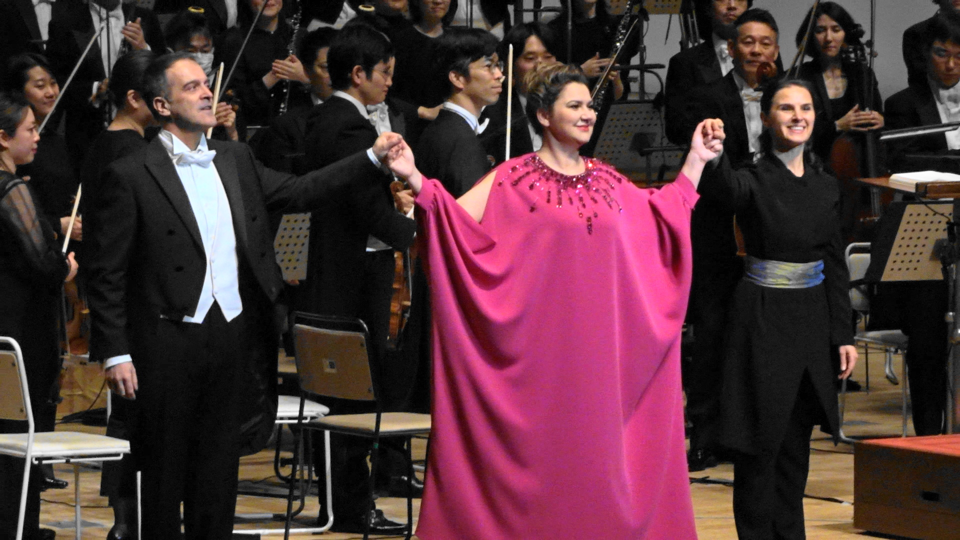 Photo AlbumPhoto:©Shevaibra, courtesy of Spring Festival inTokyo#東京春音楽祭 #行こうハルサイ※春祭2025:カーテンコール中、場内写真撮影可能文中敬称略Spring Festival in TokyoTokyo-HARUSAI Puccini Series vol.6Puccini:“Madama Butterfly”(3 Acts in Concert Style)April 10 [Thu.], 2025 at 15:00Tokyo Bunka Kaikan Main HallConductor:Oksana LynivMadama Butterfly(Soprano):Lana KosPinkerton(Tenor):Piero Pretti (Replacing Joshua Guerrero Sharpless(Baritone):Eijiro KaiSuzuki(Mezzo-soprano):Kasumi Shimizu東京春祭プッチーニ・シリーズ vol.6プッチーニ:歌劇《蝶々夫人》(全3幕 演奏会形式)2025年4月10日 [木] 15:00開演東京文化会館 大ホール指揮:オクサーナ・リーニフ蝶々夫人(ソプラノ):ラナ・コスピンカートン(テノール):ピエロ・プレッティ※シャープレス(バリトン):甲斐栄次郎スズキ(メゾ・ソプラノ):清水華澄ゴロー(テノール):糸賀修平ボンゾ(バス・バリトン):三戸大久ヤマドリ(バス・バリトン):畠山 茂ケート(ソプラノ):田崎美香ヤクシデ:望月一平神官:小林大祐登記係:大槻聡之介読売日本交響楽団コンサートマスター:林悠介合唱:東京オペラシンガーズ合唱指揮:仲田淳也※当初出演予定のピンカートン役のジョシュア・ゲレーロは都合により出演不可に。代わり、ピエロ・プレッティが出演***春祭「蝶々夫人」Day1蝶々夫人はプリマドンナオペラだというのを実感した。ラナ・コス、すばらしかった。強烈なリリコ・スピント・ソプラノ/ドラマチック・ソプラノでパワフルかつ美声。日本人が演じる蝶々さんのイメージとは全く異なる超強気かつフレンドリーな女性像もちろん所作も和風一切なく衣装は洋服、履き物は7センチのピンヒールで演技は自由に動き回るでもこのパワフルさがプッチーニのソプラノには必要。まるでトゥーランドットのような存在感でトスカ も似合う声。これぞプッチーニ・ソプラノ!ただし超高音は慎重になるためソット・ヴォーチェになる傾向があった。1幕登場のアリアは多分Hi C出した(そでで歌唱)オケが爆音で聴こえづらかったが…。ピンカートンは彼女に比すとやや弱いが、十分なリリコ・スピント・テノールで大変がんばっていて、代役の役目は果たした。シャープレスの甲斐さんはノーブルなカヴァリエ・バリトンで本当に上品な外交官で魅惑の声と苦渋に満ちた抑えた演技も秀逸。スズキの清水さんは日本最高レヴェルのスズキで煌々とオーラを放つ。海のように深く火のような蝶々さんを大きく受け止めていて、さすが華澄さんだった!演奏会形式なので歌手たちは十分聴かせどころを伸ばしたいだけ伸ばしてドラマチックだった。特に蝶々さんは指揮者とアイコンタクトしながら気持ちよさそうに伸ばす伸ばすでもさすがオペラ歌手と感じさせた。アラーニャか(笑)誰もスコアを手にせず完全全員暗譜で演じていた。ゴローの糸賀さんがシャープな通る声で本当にすばらしかった。ゴローは本当重要な役ヤマドリも舞台慣れした剽軽な味がすばらしい👍蝶々さんにどんどん近づいていくので蝶々さんが嫌がって逃げるなど演奏会形式と思えぬ面白さだった。ボンゾも最高のバスバリトン三戸さんすごかった。詳細続く。