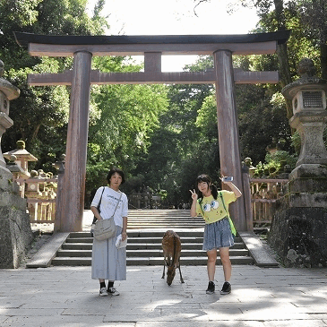 大きな森に囲まれた春日大社境内に住む鹿達、日陰の少ない奈良公園で暮らす鹿達より真夏の暑さは凌げるが、草がほとんどない為、訪れる観光客に餌をねだる姿が印象的だ。