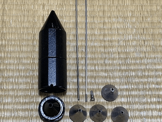 )ではなく、下籠の円錐型に合わせた円錐型錘を外側に差し込む着脱交換型にミニ改良した。