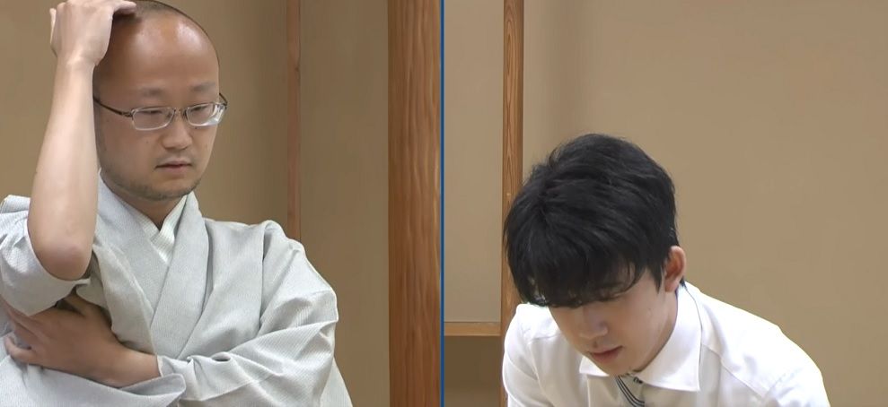木村一基王位への挑戦を目指す第61期王位戦挑戦者決定戦の▲藤井聡太七段-△永瀬拓矢二冠戦は、終局時刻は19時52分に藤井聡七段の勝ち。消費時間は▲藤井聡3時間57分、△永瀬3時間59分。戦型は藤井君が先手で角換わり早繰り銀。13手目 ▲1六歩。早い端歩突きは6/13に指された白組リーグ5回戦で、藤井君が先手の阿部健治郎七段に指されたばかり。阿部健七段との対局でこの端歩突きが面白いと考えたのだろうか。旺盛な好奇心がうかがえる。羽生善治九段も直近の対局の反対側を持ってタイトル戦を指すことがあった。27手目▲6八玉は永瀬さんに取られた9筋の位に近づくが、7八金にヒモをつけた。例えば、△6四銀▲3五歩△同歩▲同銀△3四歩▲2四歩△同銀▲同銀と進んだときに△2七歩▲同飛△4五角が飛車金両取りにならない。14時16分、ついに藤井君の手が動く。持ち時間の4時間の4割にあたる1時間36分の大長考。▲4六角までの消費時間は▲藤井聡2時間9分、△永瀬1時間13分。△7五歩と突いた流れから△7六歩▲同銀△8六歩と攻めたいが、▲6五歩があるためうまくいくか不透明。▲6五歩を防ぎながら7筋に圧力をかけるなら△5四角が考えられる。△5四角は△9六歩▲同歩△9八歩で香を狙う筋もあって好点。以下▲7五歩には、△7六歩▲8八銀△8六歩▲同歩△同飛とさばく。▲7六歩だと△8五飛▲8六歩△4六桂▲8五歩△7七歩から攻めが続く。また、△4六桂に▲7五桂と取れるのは67手目▲4八金の効果。▲5七角は△6六桂▲6七金△8五飛▲8六歩△同飛▲同銀△7八馬▲5九玉△6七馬の強襲がある。また、▲7六歩は△8五飛▲8六歩△7七歩▲同金△4六桂▲8五歩△7九角▲5九玉△5八桂成▲同金△3五角成が厳しい。▲7六歩ではなく▲6七桂だった理由は、7七の空間を空けないところにあった。平凡な▲7九金では永瀬さんの強襲を凌ぎ切れないと判断し、81手目 ▲2九飛。下段飛車の防御力に期待。飛車取りに当てた77手目▲3七桂からの一連の守備攻めを判断した手順。先手は▲6二歩、あるいは▲8一飛から▲6二歩の反撃が楽しみだ。永瀬さんも△6六桂と取ったのは▲6二歩は覚悟のうえ。攻めでポイントを挙げようとしている。▲7九金は△同馬▲同玉△5九角が厳しい。金桂交換の戦果を挙げて、後手の攻めはひと息ついた。ここで藤井君に手を渡して攻めさせるのが永瀬さんの棋風。今度は先手藤井君が攻める番。厳しい攻めがないと△6六角を食らってしまう。△7八同馬▲同玉△6六角の強襲は受けるのが難しい。▲7三銀も見えるがこの手99手目 ▲8三同歩成が冷静。ここで△9八飛は▲8八歩△9七角成に▲9九銀や▲8九銀。なので、△9七角成が予想される。難解な形勢が続いていたが、ついに先手がはっきり優勢となった。すたこら逃げる藤井君の玉。66手目あたりのころを思えば、先手玉はかなり安全になった。攻め駒と思われた3五銀や3四歩、3七桂が厚みとして働いている。受け駒に転化して輝きだすとは凄い大局観。駒の損得はないが、と金を急所に作っているし、後手は2二銀の壁銀がつらい。△4一玉と2筋に近づいたので、その瞬間に▲2四歩。後手玉は6筋方面に逃げ込めないため、2筋方面から追い詰めれば、受けなしとなる。127手目 ▲5八銀打。銀を手放しても後手玉は詰めろのまま。この手を見て、永瀬さんは投了。終局時刻は19時52分。消費時間は、▲藤井聡3時間57分、△永瀬3時間59分。勝った藤井君は王位戦初挑戦。棋聖戦に続いて2棋戦連続でタイトル挑戦となる。七番勝負第1局は、7月1・2日に愛知県豊橋市「ホテルアークリッシュ豊橋」で指される。74手目△5四桂の局面は先手が残り7分。先手藤井君が受けきるのは容易でない形勢。しかし、75手目▲6七桂からの切り返しが功を奏す。その後、永瀬さんに決定的なミスは無かったがいつしか藤井七段が圧倒する展開。