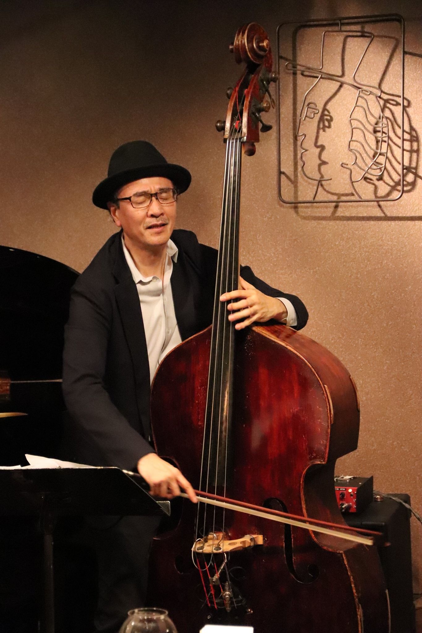 Streamingで拝聴したのみでライブには行けてないので、Body&Soulのレポートで写真を提供されている菅野さんのお写真を拝借。将棋の「藤井ー永瀬」戦があってAmebaで観戦していたので、Body&Soulに参上できず残念。セットリストは<< 2020 May 16th 井上陽介TRIO 無観客生配信ライブ@大塚GRECO >>の選曲にスタンダード「6.Love Theme from “Spartacus”」(akikoさんのボーカルの人気曲)、陽介さんオリジナル「9.Magic Touch」と武本君のオリジナル「5.In the Distance」、「8.Anniversary」がプラスされた構成だったようだ。Youtube/Periscopeの配信で1stの「3.Speak Low 」までの3曲と2ndの5曲、計8曲を拝聴。トリオのこの自粛期間に蓄積されたパワーが漲る力強いプレイ。武本君のボーカルは<<2018 Sep 22th vo SHIHO+Twinピアノ@大塚Greco >>以来だと思うが、今日も素晴らしいボーカル。アンコール前の「9.Magic Touch」は陽介さん渾身のベース。躍動感溢れるGroove!<< 2020 Jun 4th 井上陽介b トリオ@青山 BODY&SOUL >>井上陽介b 武本和大p 濱田省吾ds1st1.濱省ブルース(仮) - by 濱田省吾2.Whisper Not - by Benny Golson3.Speak Low - by Kurt Weill4.You Raise Me Up - by Rolf Lovland (Secret Gardenの曲)5.In the Distance - by 武本和大2nd6.Love Theme from “Spartacus”- by ALEX NORTH7.New Stories - by 井上陽介8.Anniversary - 作詞 城所琳音、作曲 武本和大 vo 武本君9.Magic Touch - by 井上陽介Enc10.上を向いて歩こう - vo 陽介さん<<2018 Sep 22th vo SHIHO+Twinピアノ@大塚Greco >>のライブの写真