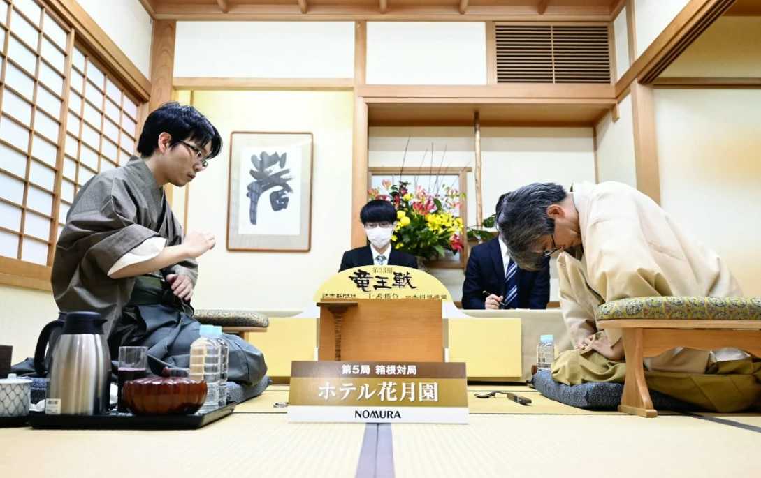 第33期竜王戦の七番勝負第5局が神奈川県箱根町のホテル花月園で行われ、6日、豊島将之竜王が羽生善治九段に勝利。今シリーズ4勝1敗で竜王を防衛。豊島竜王がタイトルを防衛するのは初めてで、叡王と合わせて二冠を守った。微差ながら60手目あたりまで羽生さん「やや優勢」だったようだが、羽生さんの61手目▲2四歩に対して豊島さんが62手目△3七歩成と桂馬を取った辺りで形勢が変わったようだ。結果論だが、3筋のと金が8筋のと金と羽生玉を包囲して、ここで取った桂馬が74手目△4四桂と攻防の手になってしまった。豊島さんが62手目△3七歩成と桂馬を取った局面