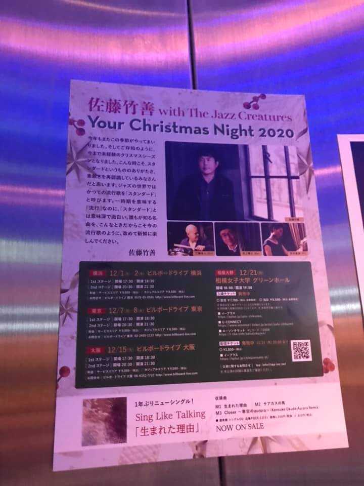 << 2020 Dec 7th 佐藤竹善 with The Jazz Creatures~Your Christmas Night 2020 1st Show@ Billboard Live TOKYO>>