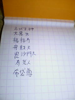 我が家のメモ帳に七福神が書かれていた。WHY??七福神??わざわざ調べたのか?なぜ彼に七福神が必要なのか??なぞは深まるばかりだ!