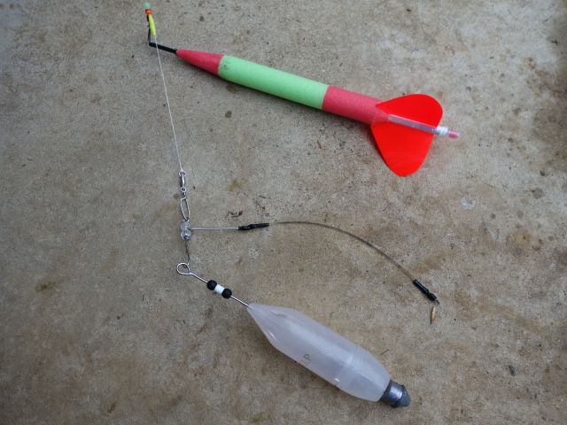 カゴとウキのバランスは10号だが、このウキ、多少の波では沈まないバランスで作ってある。
