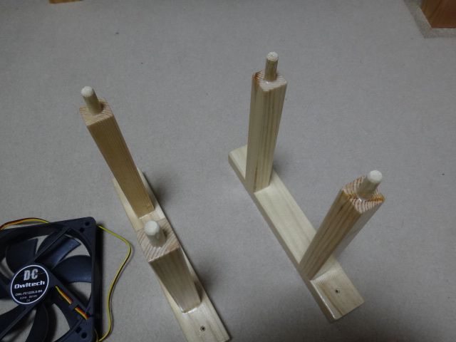 設置台とファン取り付け台の間はゴムの緩衝材を入れて、ファンの振動が直接ラックに伝わらないように工夫した。