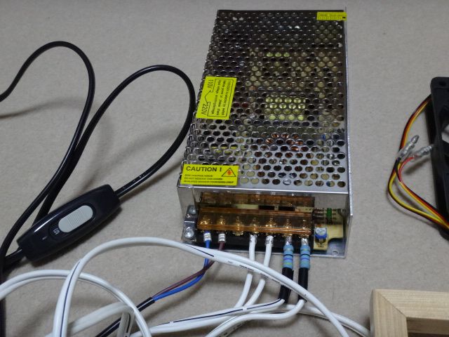 テスターで計ったらDC13.5V位出ていてファンが回り過ぎてうるさいので、大西さんに相談して抵抗を入れて8V位まで下げた(抵抗値は忘れました)。