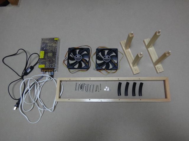 ファンはDC12V12cm径のパソコン用を流用、2台で送料込み2980円…安い!。