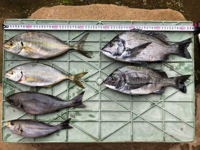 1時間ほど経過したころ「ボ、ボ、ボッ」としたアタリが出て30cmオーバーのクロダイが来たが、シマアジの引きから比べたら何とも貧弱な引きだ。