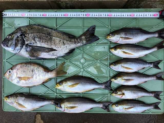 22時半までの2時間で小型イサキ9匹とメイチダイ1匹を釣って納竿した。