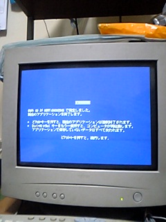 前日の事、新聞の折り込み広告を見ながら「新しいパソコンが欲しいなぁ~!」なんて話をしていると、嫁もまんざらではない様子だったので、アプライドへパソコンを見に行ってきました。あまりパソコンには詳しくない方なので、何が何やらサッパリ分からず、ネットででも下調べしてからにしようと、ひとまず退散。しか~し、帰宅してパソコンを立ち上げると、下の様にエラーが発生し、立ち上げることができません。何度も試しましたがやっぱりダメ!半年ほど前にも同じように全く立ち上がらなくなり、初期状態に戻していたこともあり、もう寿命?ってことで買い替えを決意!なんかタイミング良過ぎますよね。で新しいパソコンはDREAMSYSのAll-In-One PCに決めました。13万円の出費です。絶対使わないと思う、ウェブカメラまで搭載してます(笑)CPU:Intel Celeron D 2.8GHzMemory:512MBHDD:160GBODD:DVD Multi17” Wide LCD前のパソコンと比べると格段に性能アップです。インターネットも快適ですな。