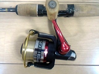 子供にCy.の1500番を使わせていたのですが、大きいことと、重いと言うことなので、小さいスピニングリールを買ってやりました。メーカー名も知らない2000円のリールです。