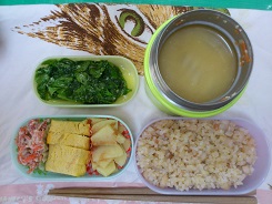 今日はアライグマおじさまが不在なので、お弁当持参でした。とはいえ、ゆうべ そのことを思い出したもので、卵だけ焼いて、あとは、残りモノで。蕪と人参の糠漬け、卵焼き、きんぴらごぼう、鮭混ぜごはん、ごぼうのお味噌汁年末から持ち越したベーコンが 冷蔵庫に入っていたので、卵焼きに入れちゃいました。賞味期限から3週間近く経っていたけれど、大丈夫みたいです。きんぴらごぼうには、ココナッツオイルを使ってみました。ほんのり甘くて、美味しい!・・・と思ったけれど、この味、食べ飽きる。おまけに、ココナッツオイルは 低温になると固まるので、お弁当には不向きだ、ということが、本日、わかりました。冷めると、ちょっと微妙な感じの黄色い破片?が 目について一瞬だけ ぎょっとします。ま、食べる分には 問題ないんですけどね。ココナッツオイルは、やはり、お菓子向きみたいです。糠漬けは、だんだん良い感じになってきていますが、求めている味には、なんだか いまひとつ欠けているような・・・糠床に、生姜でも入れてみようかしら。お味噌汁も、ごぼう。今日は、食物繊維が豊富です。きんぴら用のごぼうのささがきを 多くつくりすぎたので、お味噌汁に入れちゃいました。年末、お気に入りの麦味噌が 手に入ったから、しばらくの間、嬉しいお味噌汁になりそうです。長いお休みの後なので、この先、週末までも 長~く感じますね。がんばりましょう☆ありがとうございます。