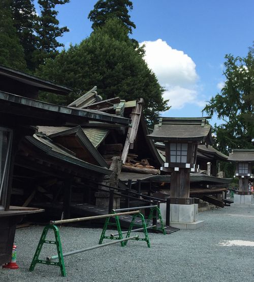 高さ18メートルもある楼門が、押しつぶされて屋根だけ残っています。