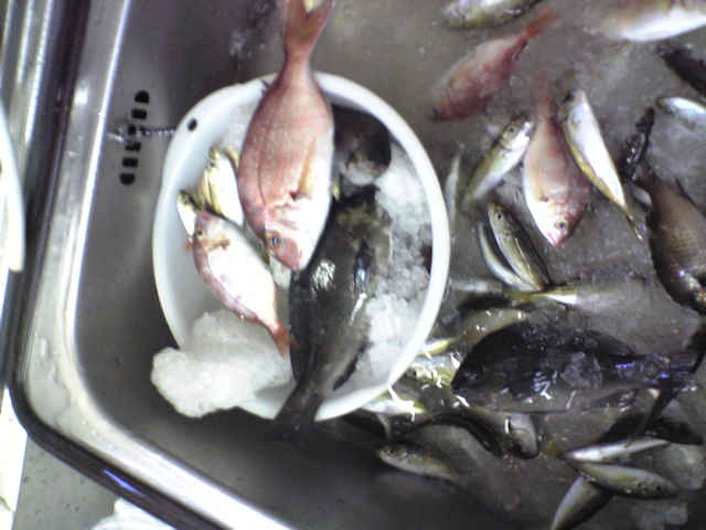 お久しぶりです。いやー 梅雨があけました。初夏がなくって いきなり真夏ですね。せみがミンミンいってます。からっと したので早速釣りにいってきましたー。今回は上司と2人で・・・サイズより数で勝負こいつらで最強コレくらいのが数くればなぁ調理中(あぶってかも&ぐれ)おいしく焼けましたーまめあじ君たちおいしくできましたーちゅうことで まぁ それなりに 楽しい釣りでしたよーあ そうそう 場所は福岡県新宮の相の島です。