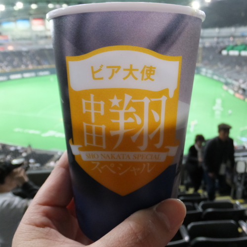 お友達と一緒に行ってきました。限定醸造のビール。1日500杯で発売。しっかりコクのあるビールでした。900円とちょっとお高めですが両先発は・・。花巻東高校の先輩後輩対決。大谷翔平投手と菊池雄星投手の投げ合い。軍配は・・。大谷投手、完投は逃したものの、後続投手の勝利の方程式により今季初白星しばらくぶりに打ち上げ花火も(笑)お友達は初めてで(何度か一緒に行ったけどいつも負け><)、とても感激しておりました。本日は中田翔選手のプレイヤーズスペシャルでした。残念ながらホームランは出ませんでしたが、明日に期待!!実は明日もドーム。甥っ子とデートです