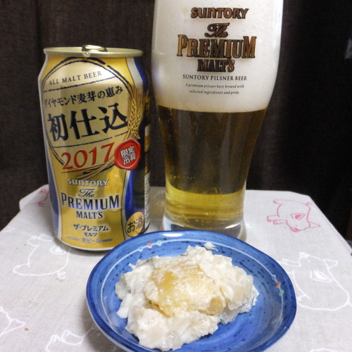 お給料日なんでイイのを。白ワインみたいな感じでとっても美味しい~!!!お供は値引きシールのマグロと・・。春巻きは冷凍庫で眠っていたもの。美味しいビールはお供を選ばない(苦笑)