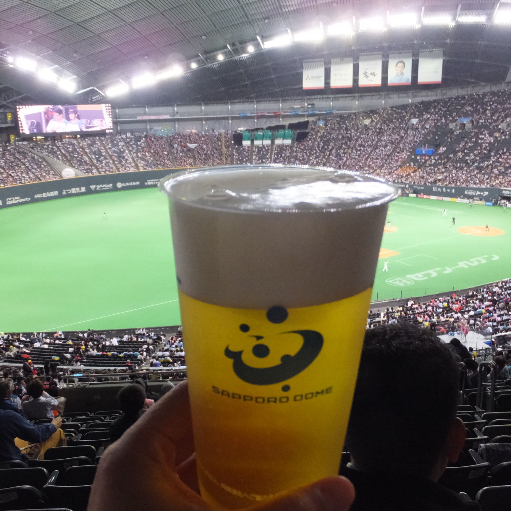 オータムフェストを堪能した後は、テクテクしながら札幌ドームへ。1時間ほど歩いたら、疲れちゃって・・。丁度バスが来たので乗っちゃいました(笑)歩き疲れたんで、先ずは1杯。昨日は負けたけど、今日は勝った。久々勝ゲーム見た気がします。あと2試合ドームであるけど、私は本日が最終日。あとはテレビで見ます。