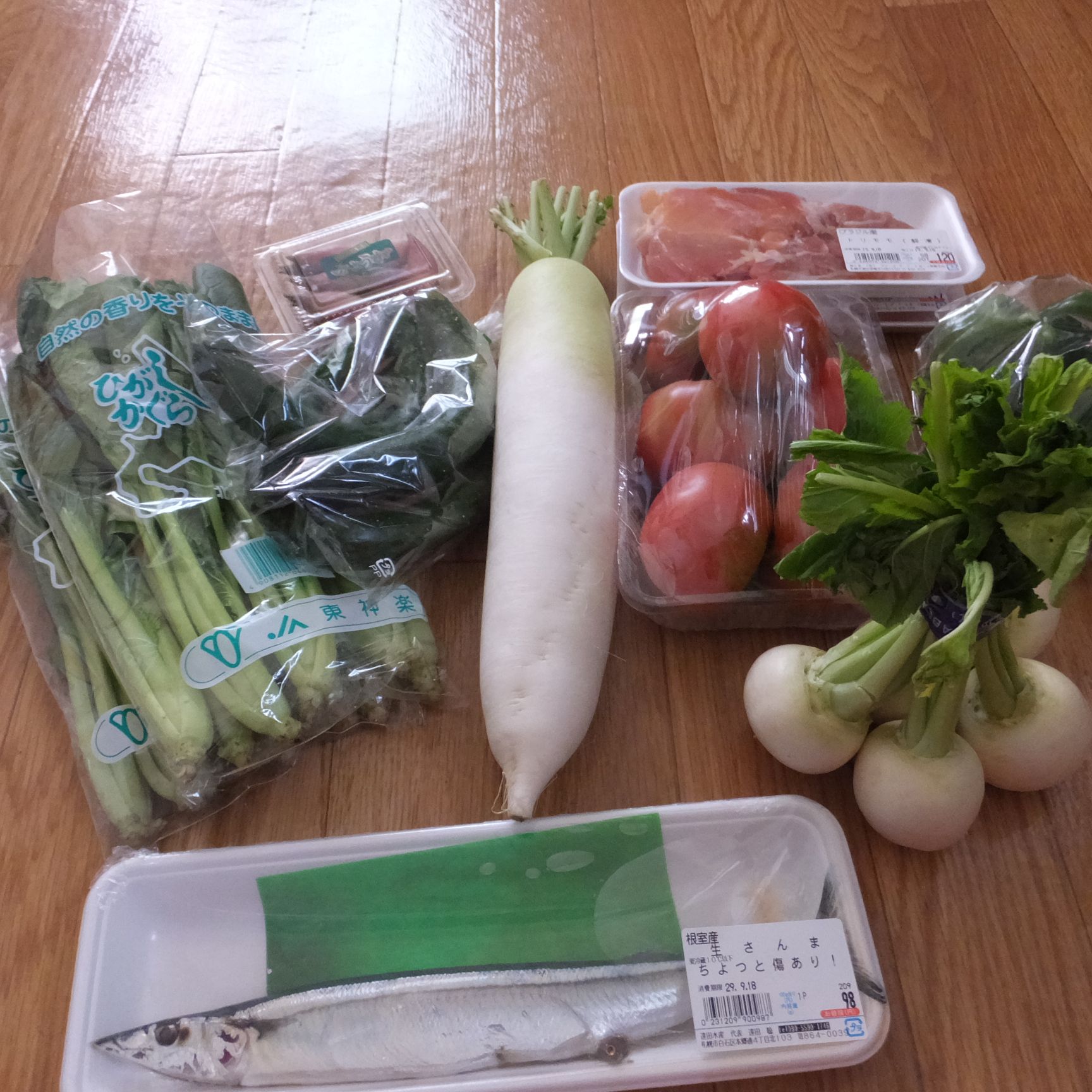 近所の激安スーパーにしばらくぶりに行ってきました。大根なんと19円!!小松菜1袋29円!!!!これだけ買っても1000円ちょっとでした。何時もより更に混んでいたのは何かイベントみたいのやってたからなんですね~。普通にばら売りしていた秋刀魚は1匹150円でしたが、私はこちらで十分。傷があっても味は同じ^^