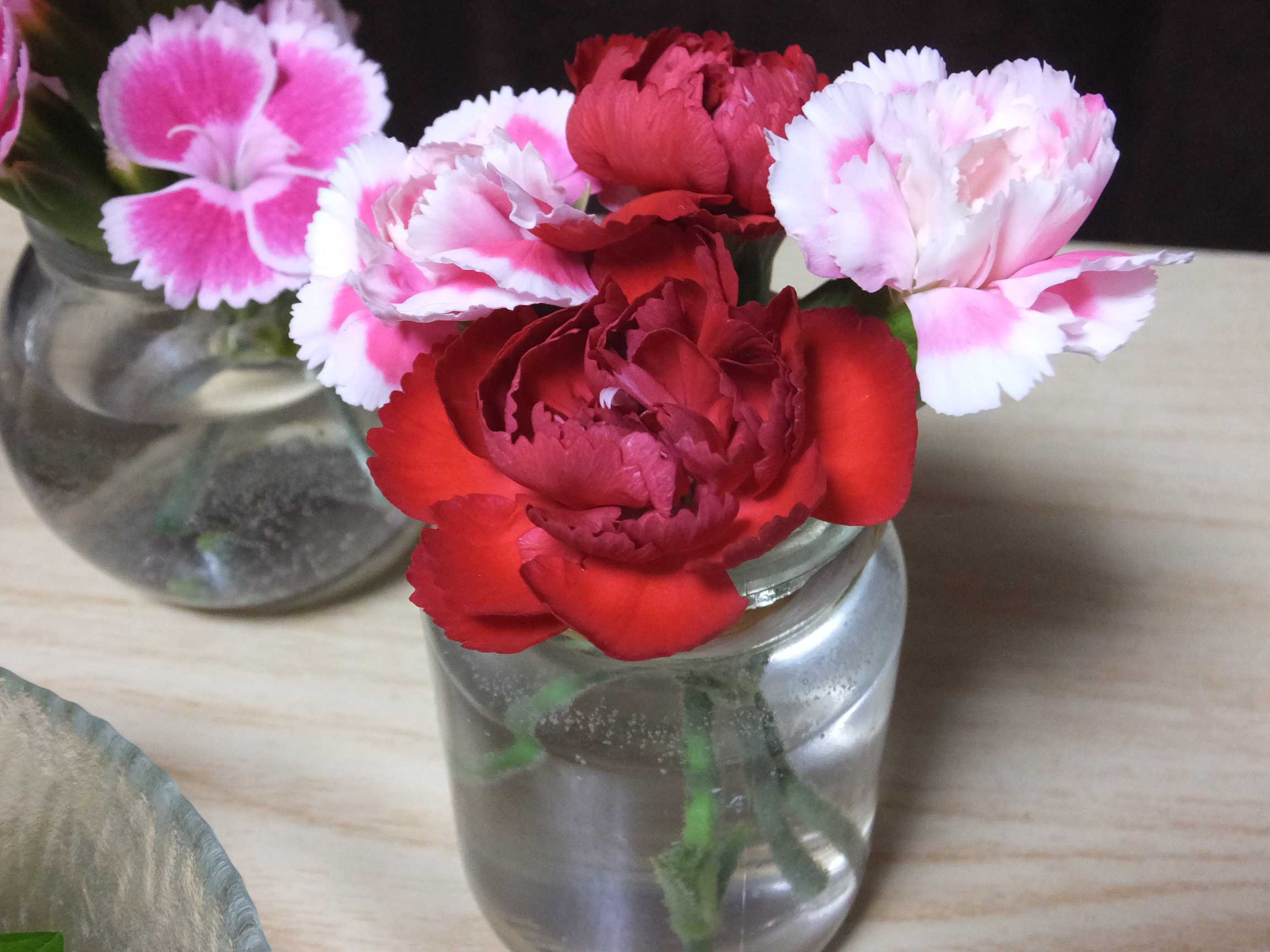 後ろは大好きな撫子さん。手前のカーネーションは、お店の方におまけで頂きました♥