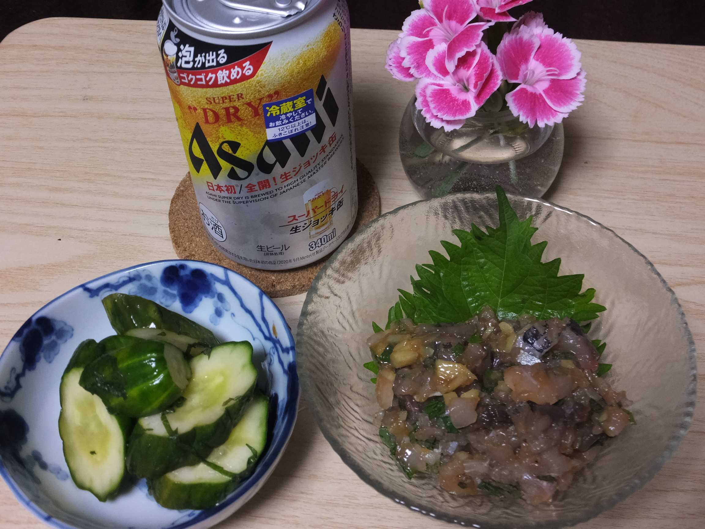 仕事帰りにステキシールが付いていた鯵を発見、お連れしてなめろう風に。