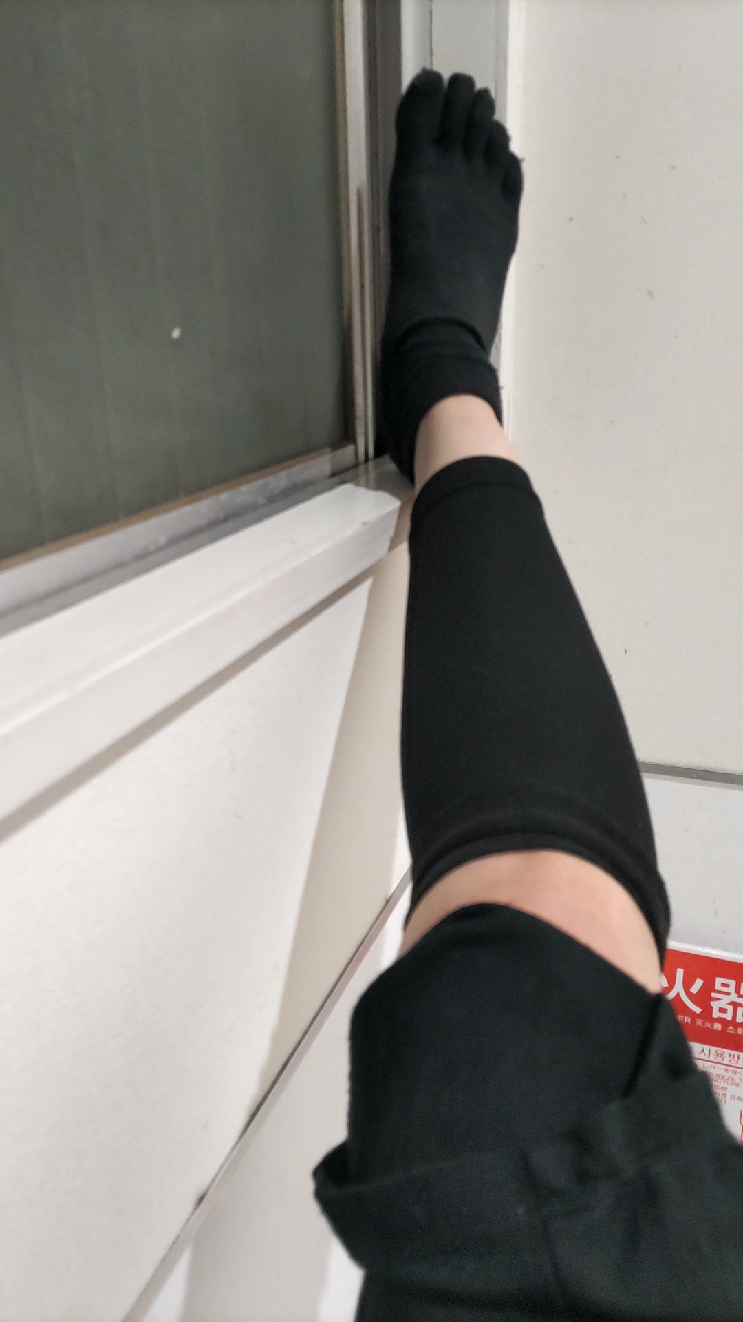 壁とか階段とか、足痛いからバレエみたく足掛けて