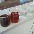 今日は参観会でおじゃりました。で。理科をば。前回の理科では謎の水溶液を4つ並べ。子供にそれが何であるかを考えさせるものでした。で何だと思います?↓黒っぽいの。子供らの予想は「ブドウジュース・イソジン・コーヒー・コーラ」などなど茶色っぽいのは「紅茶・ウーロン茶」など・・中には「くそ」というバカチンも・・。うんなもの、入れっかいな!!でまず見た目じゃわからないということでにおい。味。感触。などの観点を出して。黒っぽいのはコーヒーのにおいと判明。茶色のは????が、鼻が利く子がいて、薄い醤油と判明。で舐めてみると確かにその味です。最後の透明な二つは。においを嗅いでもわからない。で味見。二つ同時に三人ずつ味見させました。せーの。で一方は「うげっ。」一方はニンマリ。さすがに見ていた子供たちもわかったようで食塩水だ。砂糖水だ。と盛り上がった。さてさて。その続きの授業が今日の参観会。取りい出したのは、試験管に入った三つの液。↓赤と黄色と青のシールが貼ってあります。で、見た目ではわからない。で、今回は中身が何かを知らせます。いえ、どれが何かは言いません。どれかが。水どれかが。塩酸どれかが。水酸化ナトリウム水溶液脅かします。塩酸「手とか付くと溶けるでえ。」「みかんの缶詰は、中国のきれいなお姉さんが一個ずつ丁寧に皮をむいて・・・。って、それは嘘で・・塩酸に漬けるんだよ。するとまわりの薄い皮が溶けて中身だけ残るんだよ。たまに、二つがくっついてると薄い皮が残ってるのはそこに塩酸が届かなかったから。」とかなんとか。で、「水酸化ナトリウムは別名苛性ソーダといって、未来少年じゃなくて名探偵コナンにも出てくる毒なんよ。ガラスも溶かしちゃうんよ。手とかに付くとぬるぬるするんだけどさあ。それってば皮膚が溶けてるんだよ。」とさらに危険感をあおる。さて、では。この中から自分で水を選んで飲みましょう・・。って飲むなよ。どれにするか決めてみて。何ていう感じでやりました。で昔懐かしリトマス紙登場。それぞれの液をガラス棒につけてリトマス紙にポトッと・・・。「わあ。」「きゃー。」みたいな。かわいいです。ただ実験助手さん。順番間違えて薬品入れてました。アブねえ。「先生にもどれかわかんないから、どれも慎重にね。」ということで無事判定しました。水酸化ナトリウム水溶液→リトマス紙 青水→リトマス紙 変化なし塩酸→リトマス紙 赤ってことで青くなるのが何だったか。覚えてますかあ。と保護者に振ったら・・顔隠された・・。やば聞いちゃいけない。青はアルカリ性。変化しないのは中性。赤くなるのは酸性。で、暗記法として「信号機、青になったらアルカリ性。」と、てくてく歩くまね。ちなみに「赤いジャケットルパン酸性。」も教えておきました。いろいろ覚え方があるみたいだけど・・。ルパンはその場での思いつきだから怖い。はは。と言うことで無事授業は終わりました。懇談もあり。苦労して編集した修学旅行ビデオを見てもらって・・。で、最後にこれが映ってしまった。↓パソのハードに入れてあった画像を使ったので。私のパソコンのデスクトップがプロジェクターに映ってしまった。爆笑状態・・。いや、これははい別にってことで本日はありがとうございました。ってな感じ。この画面。以前クラスの子にも見られ、先生ヘンタイと・・。別にヘンタイとは思わないが・・。そうそう、この間。クラスの子の言葉にズキッときたことが。遅くまでテレビを見ている子があってその子に、「いかんらあ。持久走大会も近いし、風邪ひき増えてるのに。そんな遅いと、なんか水着のお姉さんが出てくる番組とか見ちゃうら。」と言ったところ。「先生。エッチな番組見てるだらぁ。」とツッコミ。あえて否定するのも面倒と・・。「別にいいらあ。大人だし。」と私が答えると。はい。ズキッまで1秒前。ゼロ。って早っ。「先生は尊敬されなくちゃいかんら。」「先生を尊敬できなくなっちゃうら。」と・・。いくつかツッコミ・・。うむ。いかん。「そんなこと言われてもごにょごによごにょ。」と言い返せなかった私。「品位」だとか、「敬意」だとか、はい。難しい言葉もご存じなお子様たちで・・。ズキッときました。ちと、教師としての品位をば保ちたいと・・・存じます。はい。