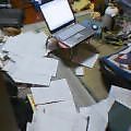 今日校内の生徒指導の会議がありました。まあ、何かと問題はあるわけですがつっても。荒れた学校というわけでもなく細かな話題になることもしばしばと、さりげで生徒指導的問題は避けてます。守秘義務っちゅうもんがありますから。で、話題は「上靴を忘れた子の対応」平和でしょ。これだけならね。でも、意見が出たので・・。話し合いに今日は校長室で暖房ガンガンでってか狭いところにひしめいてるから暑い・・ついうとうと。で話の端々を聴いていると・・。「忘れる子がいたときにスリッパを貸すか貸さないか。」みたいなことを言ってました。眠い。で、そのうち、「スリッパを貸すのは良いけど低学年は、ぶかぶかで階段などで滑ったりすると危険。」みたいな意見が出てました。他界一時別の世界へ。眠いんだもの。で、話はさらに進んでいた。「貸し出すように安いので良いから、そろえましょう。」??????何???えっ。何だって、忘れた子専用の履き物を用意するって・・。どうも話が決まりかけていたようでした。「ちょっ、ちょっとまって。何でそんな忘れた子のための履き物用意しなけりゃ行けないの?忘れたら、裸足でいいじゃないですか?仮に画鋲踏んでも・・まあ、破傷風とかなると困るけど・・。でも忘れたらこんなに困ったってので覚えさせた方が良いんじゃないですか。」と他界。どうも、履き物用意する案には反対だった先生(比較的若い女の先生)もあったようでうなずいていた。また、睡魔がすいません。みたいな感じで言うだけ言った他界は半分寝かけて成り行きを聴いていました。で、結局履き物購入は取りやめになりました。実は今日クラスでも忘れ物ラッシュで・・。どうしても必要なものだったので電話させたり・・。携帯貸したりで一騒動。共働きの家だってあるし、親と連絡は取れない。終いには教頭先生に家まで子供とともに行ってもらったり。子供たち何かと忘れ物をしても、それは事務室で借りられるあれは保健室で借りられるっていうことに異様にくわしい。てか、貸し出し体制があってなんなんだあって感じ。さらにさらに夕刻頃からは学校に忘れ物を取りに来る子も異様に異様にとっても異様に多い。今日も何人か来ました。強者の少年もいて。週に4回忘れ物を取りに来る。で、その子今日だけで二度学校に忘れ物取りに来ました。来ると担任が教室までついて行ってまた戻るという約束がありますが。不在の場合は職員室にいる者でで私行きました。さすがに二度目は「お前なあ、今度来たら、先生怒るからなあ。」と脅かしました。という私は小学校時代。忘れ物は毎度っていうか、予定というものを書いたことがない。宿題というものをやったことがない。怒られ慣れた子供でした。ああ、先生様ごめんなさい。って今頃言っても遅いけど・・。つっても今でも忘れ物よくしますが・・。さすがに以前日記に書いたように自動車忘れて帰るようなことはないですが・・。授業で使う道具とか。黙ってれば子供はわかんないんだけど・・。また正直に言っちゃうものだから子供のひんしゅく買ってます。はい。情けなや。おまけ成績処理中の私の部屋。↓マジで足の踏み場がない。おまけ昨日ふと気が付いたら風呂に一時間浸かっていた。それも熱くして。脱衣所でひっくり返りつつ、20分ほど・・。はあはあ、していた。バカである。おまけ職員室の私の机の上でころんと出てきた。これなーに?↓答えはこれ。↓ハエ取り紙まだハエが出ます?今日